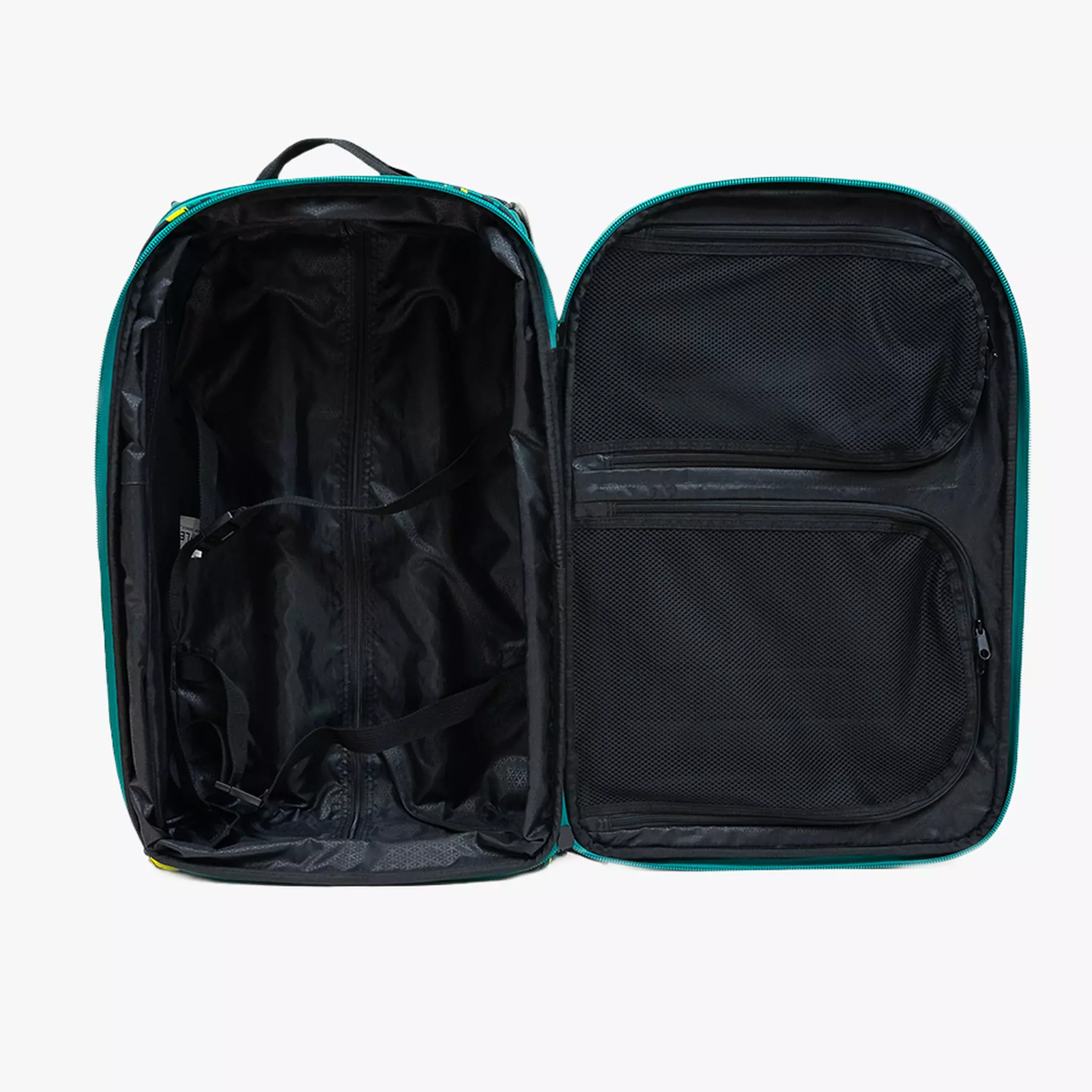 Organizacja Clamshell: Torba otwiera się na pół, co ułatwia dostęp do ubrań i zapobiega ich przemieszczaniu dzięki wewnętrznym pasom kompresyjnym.